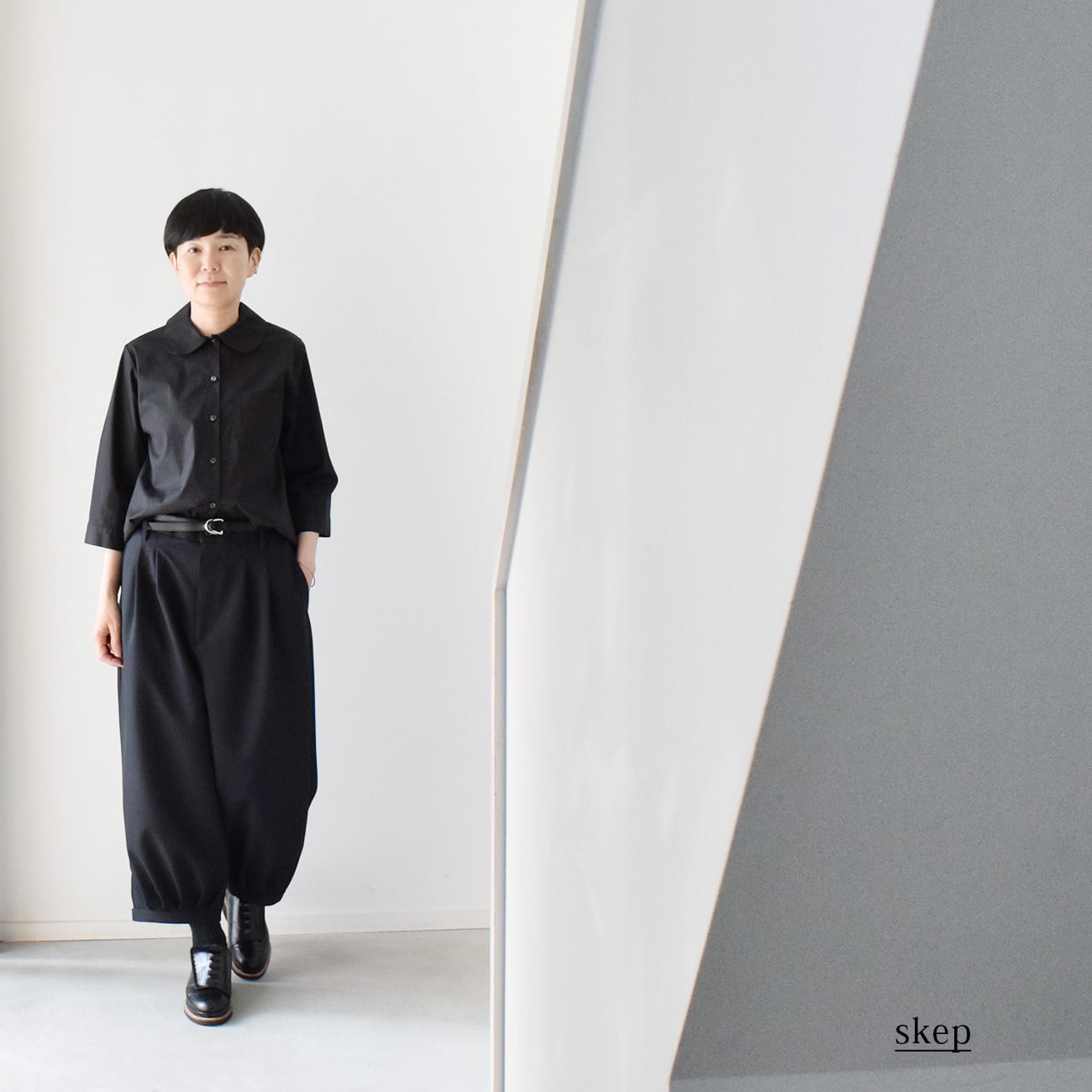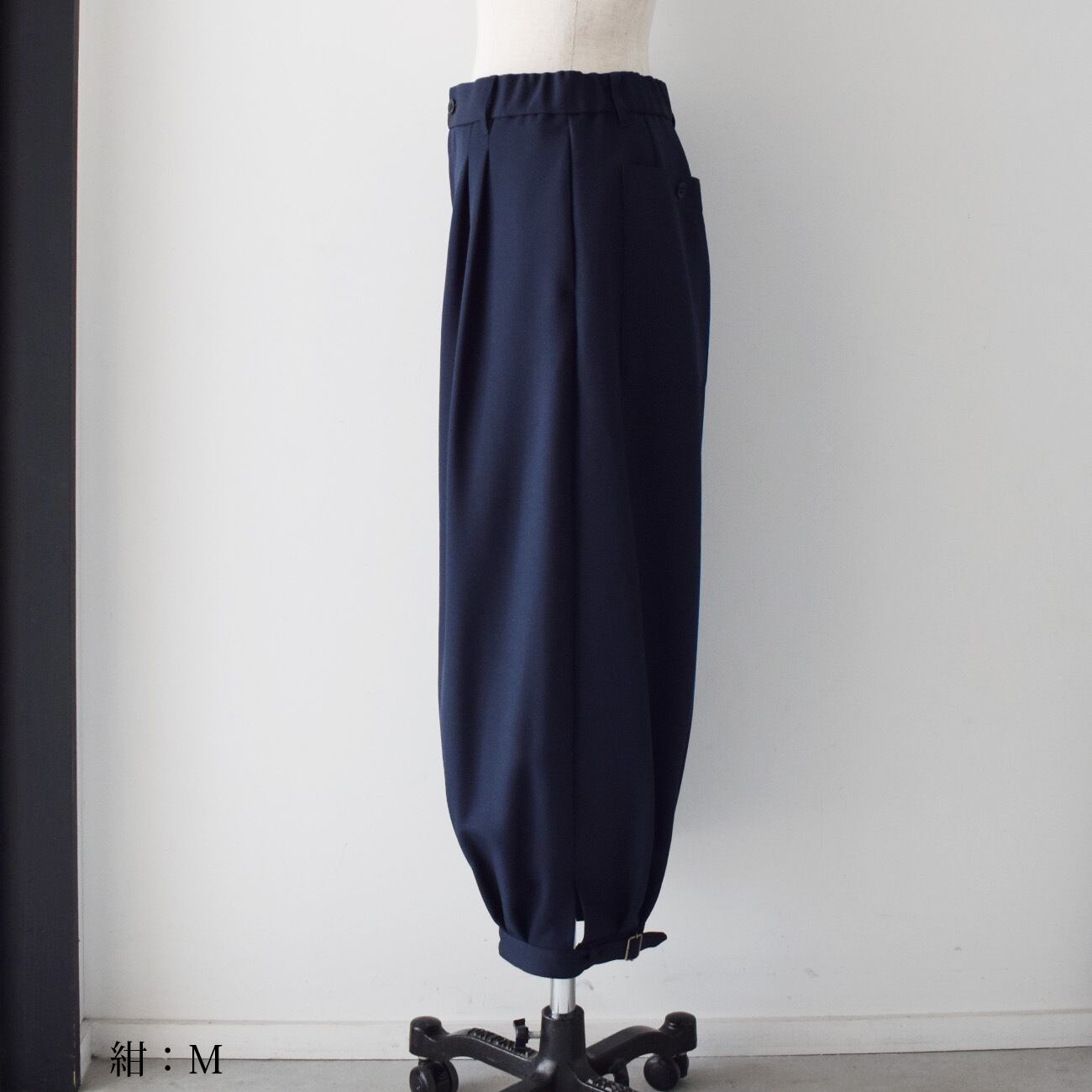 静電糸を織り込んだポリエステル100%の生地で作った、オールシーズンご着用頂ける、ちょっと短め丈のバルーンパンツです。