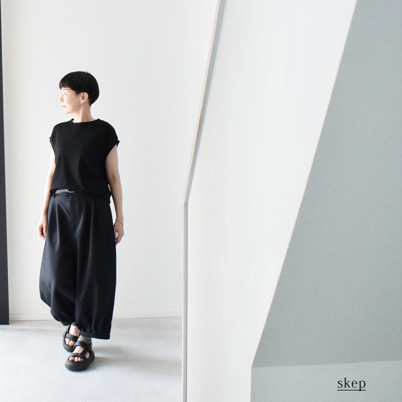 例えば暑い季節はポンチ素材のフレンチスリーブカットソー(レーヨン84%ナイロン13%ポリウレタン3%)
