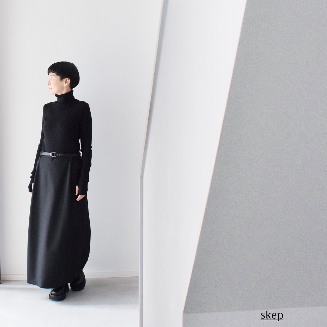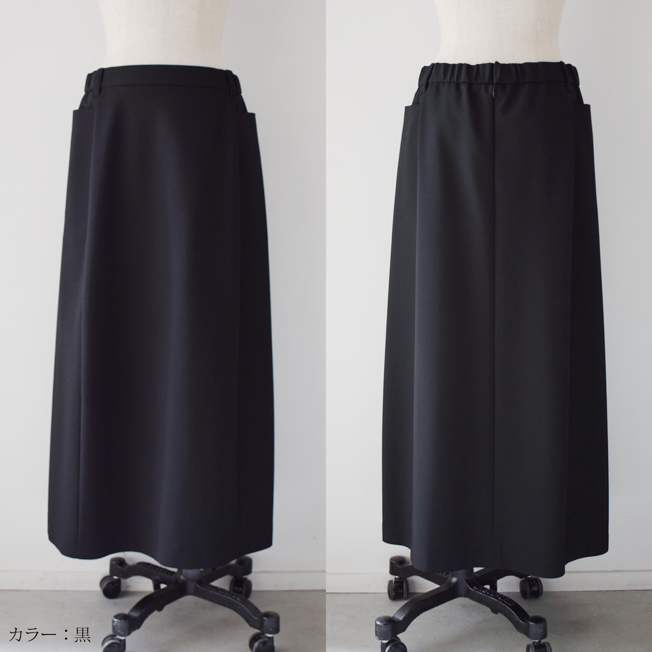 スッキリとしたやや台形のシルエットで、なるべく足さばきが良いようにデザインを整えたロングスカートです。