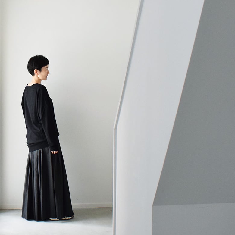 ボリュームがあるのにすっきりと見えるウエスト周りと、裾に向かって程よく広がりのある豊かなドレープ感を持たせられるようデザインした、
