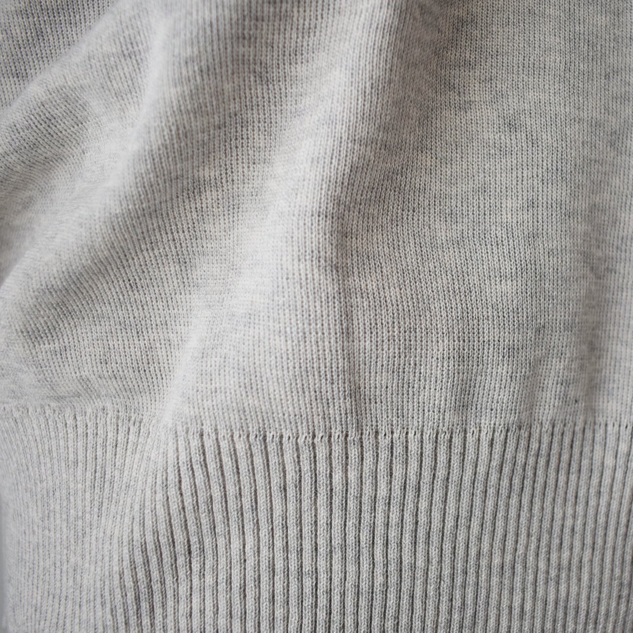 太めのリブ編み(2重)のVネックに、長めでリブ編みの袖口で、程よい上品さに控えめな個性を持たせた、