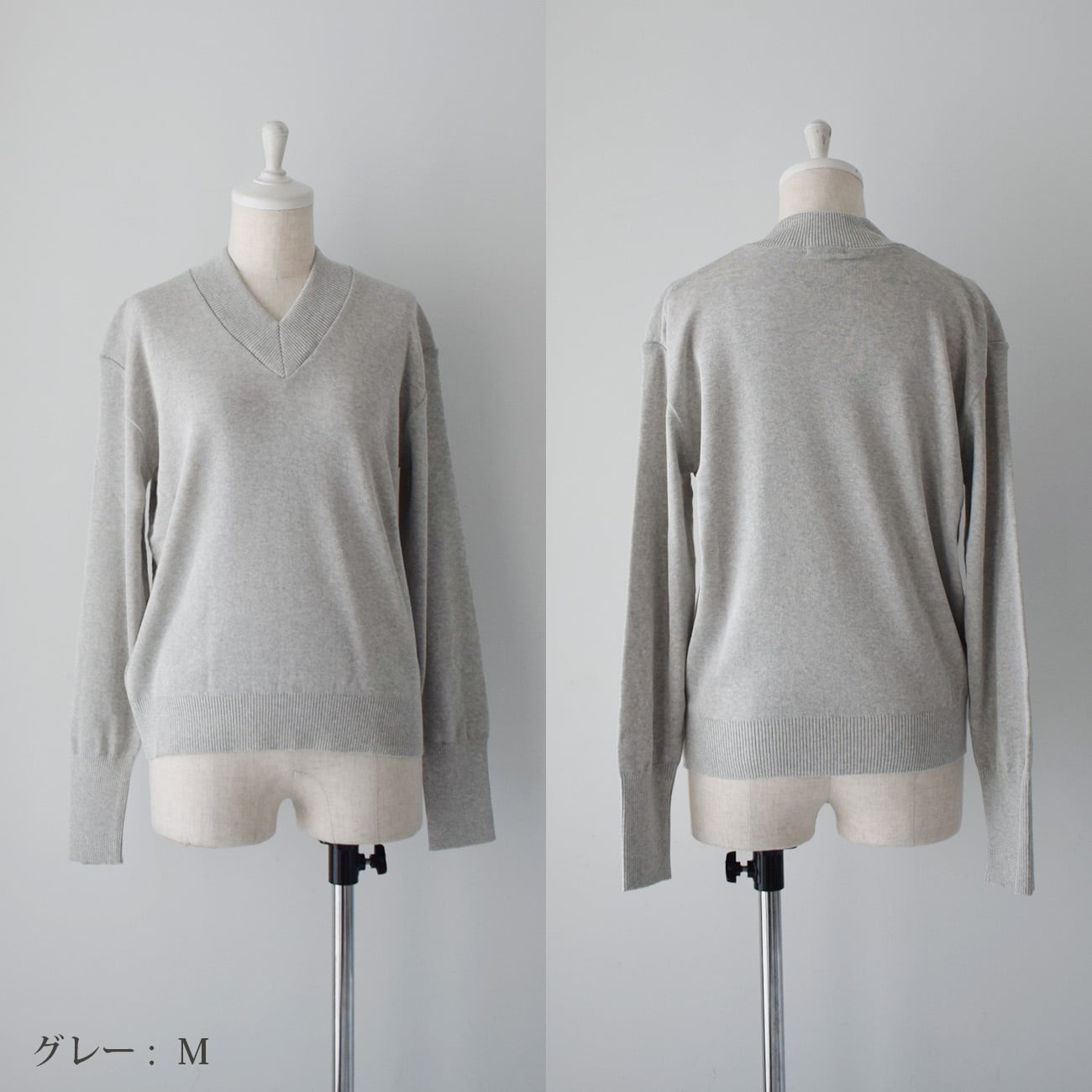 長袖Vネックニット:グレー[NT59LSGY]
