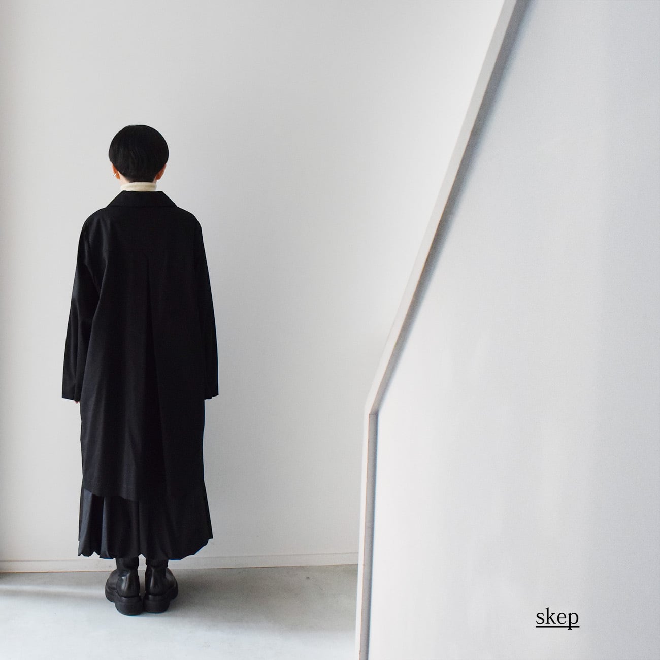後ろ姿のポイントとして、後ろヨーク切替をやや大きめにし、skepの逆三角形のポイントを入れています。