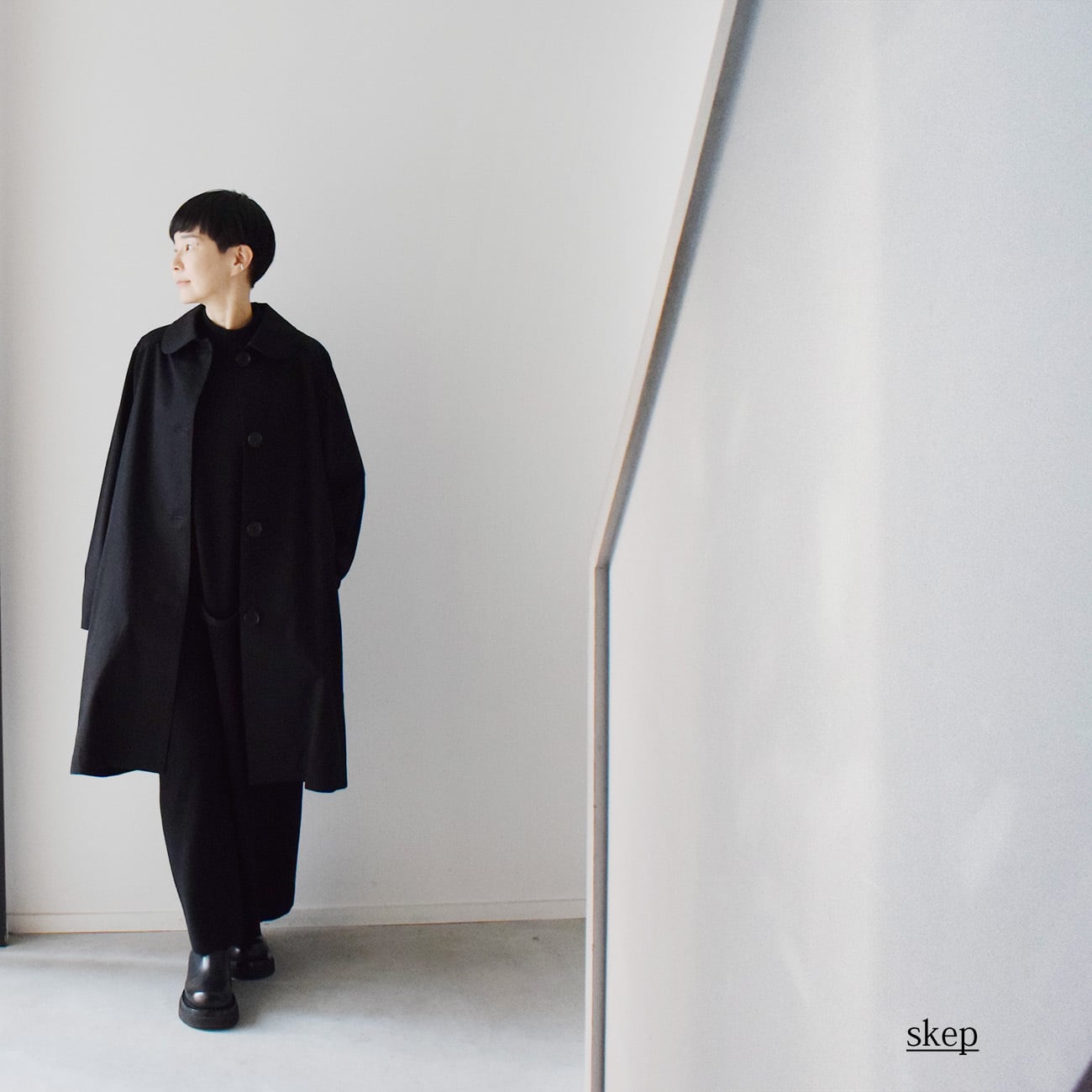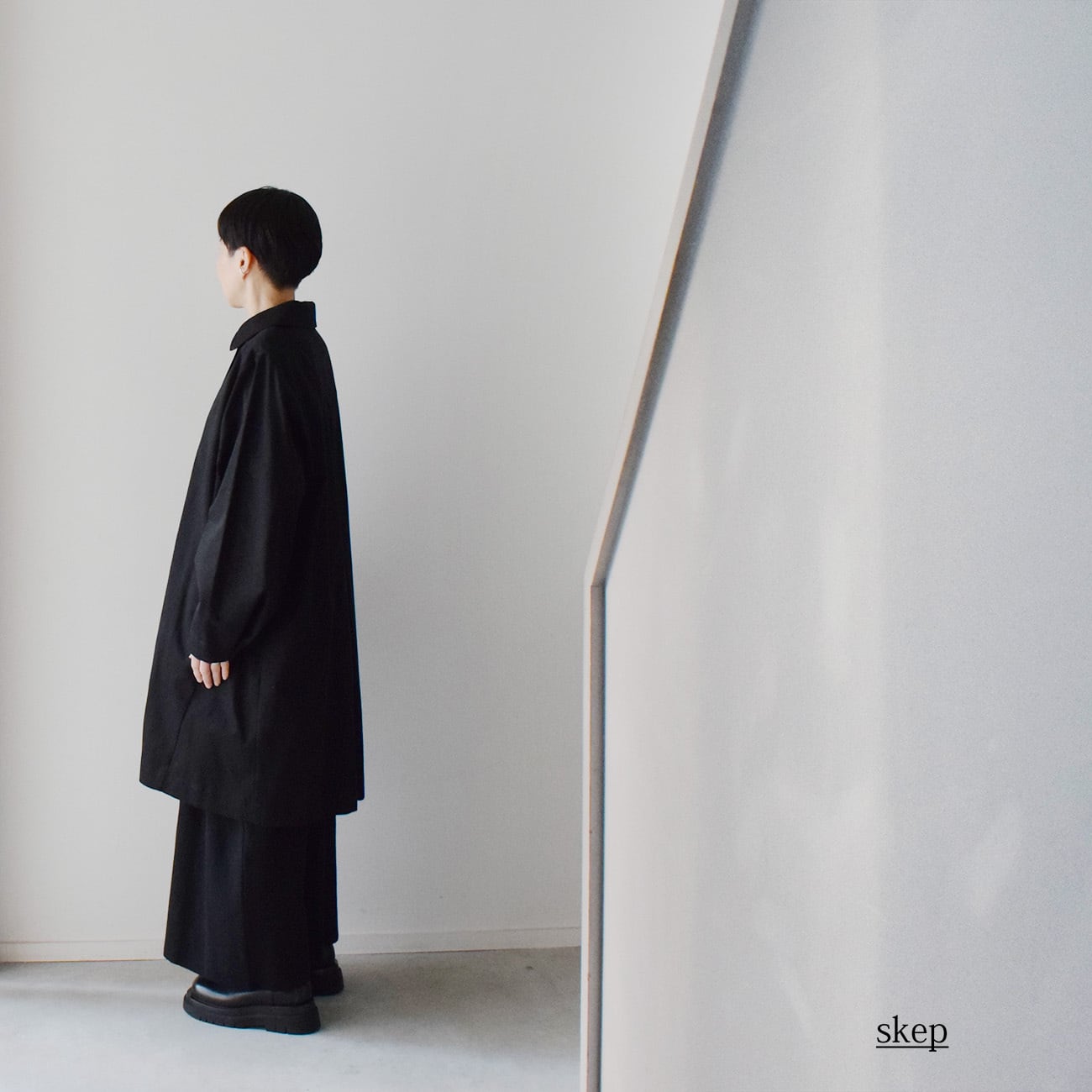 スタッフは、少し丈の短めのパンツや、Iラインのワンピースに合わせるのがお気に入りで、