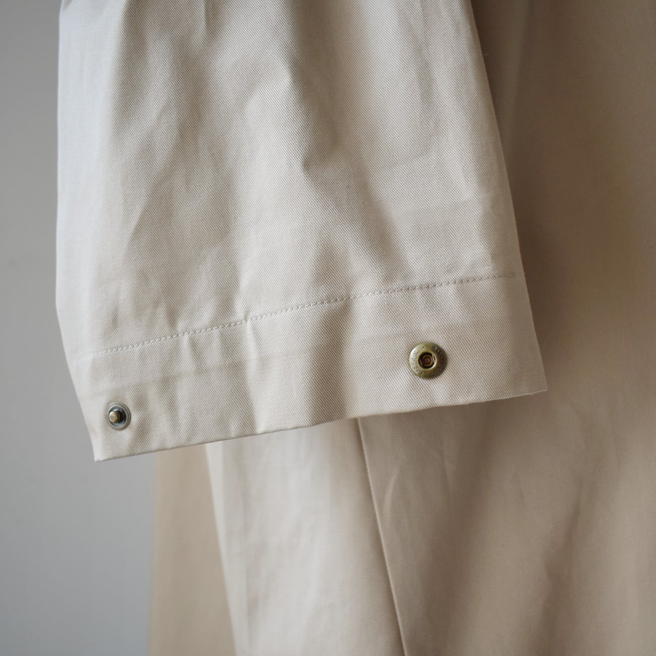 上品な表面感と程良いハリコシ感があって、カジュアル過ぎない感じの綿100%の生地感が気に入っています。