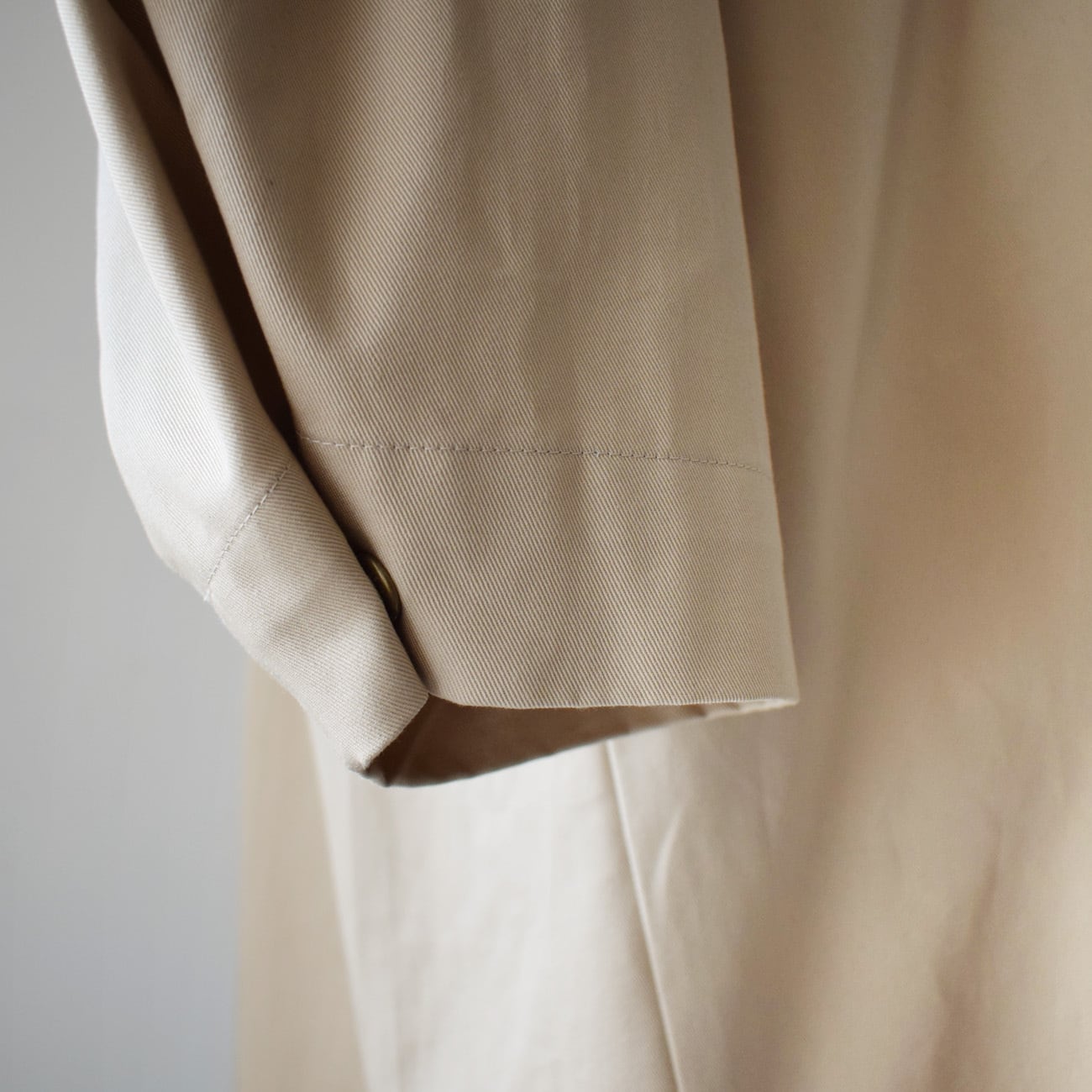 上品な表面感と程良いハリコシ感があって、カジュアル過ぎない感じの綿100%の生地感が気に入っています。