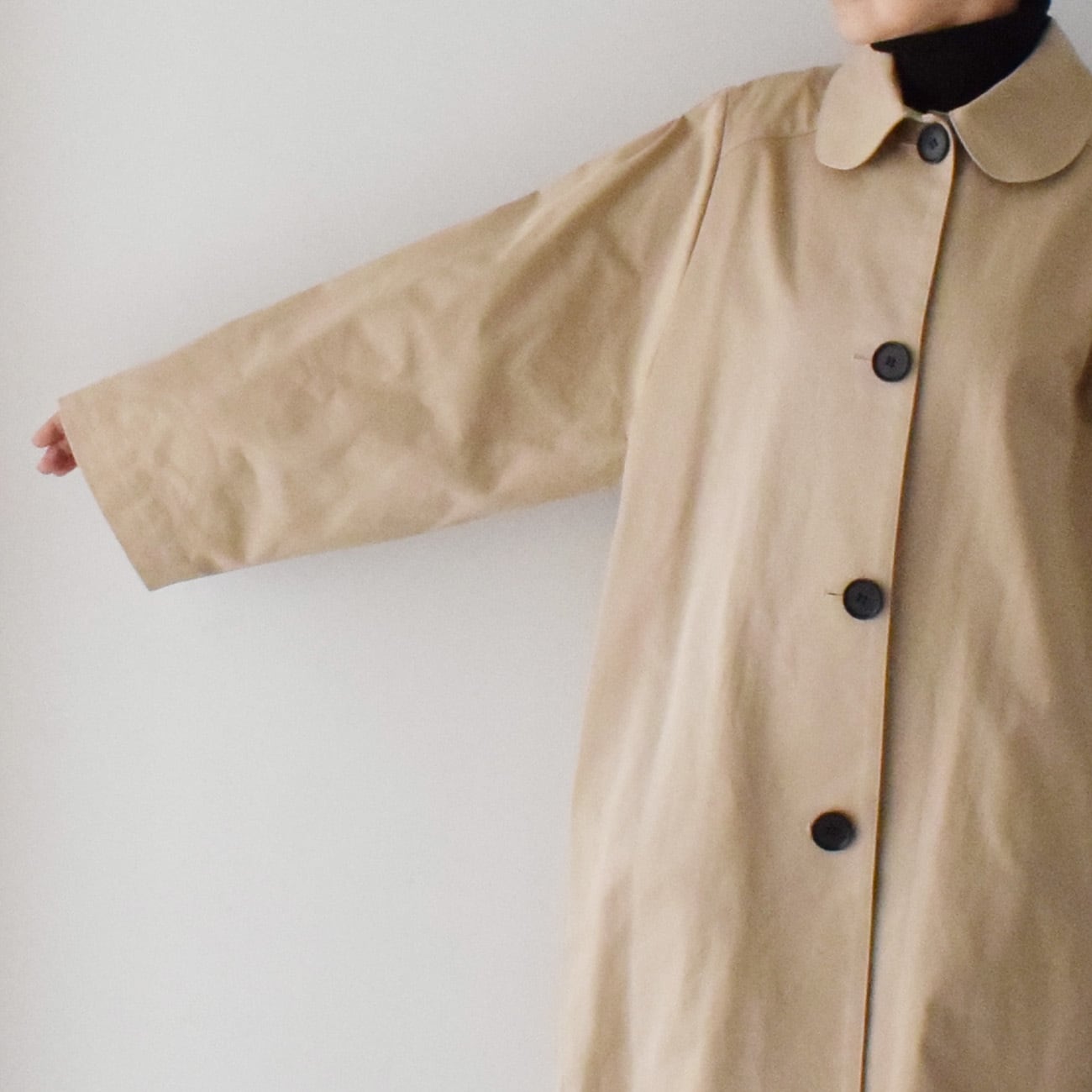 丸襟のゆったりライトコート(コットン100%):ベージュ[CO59LSBE]