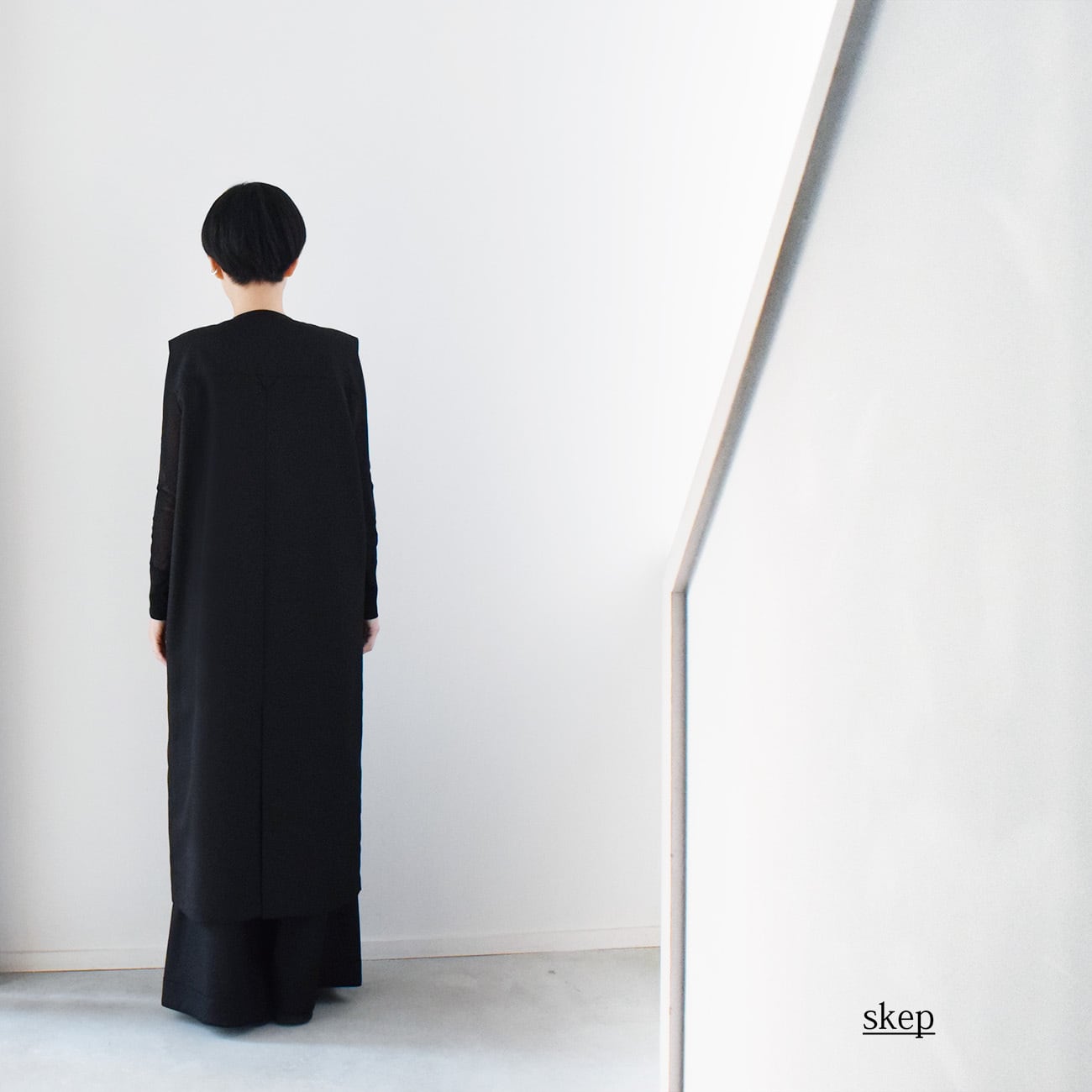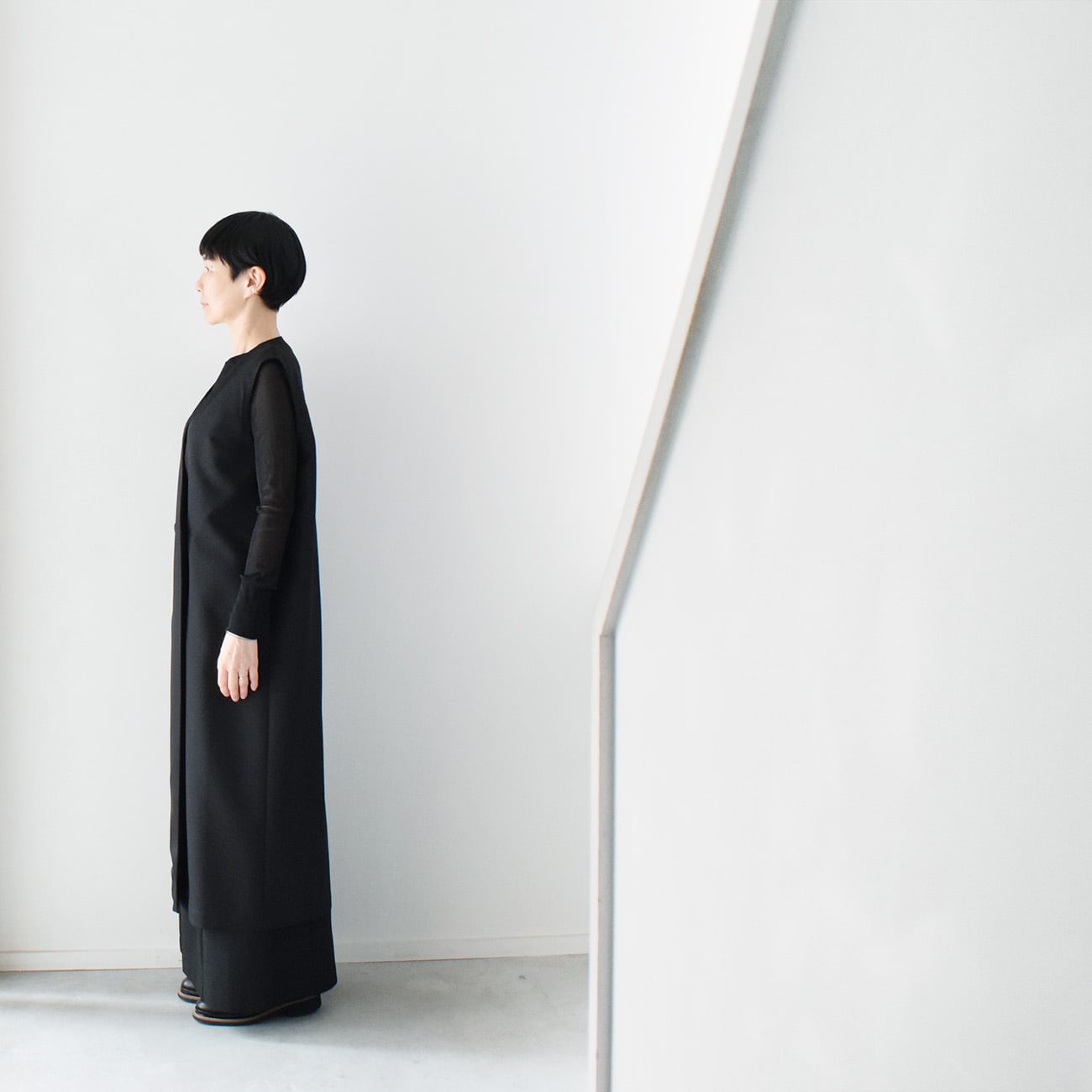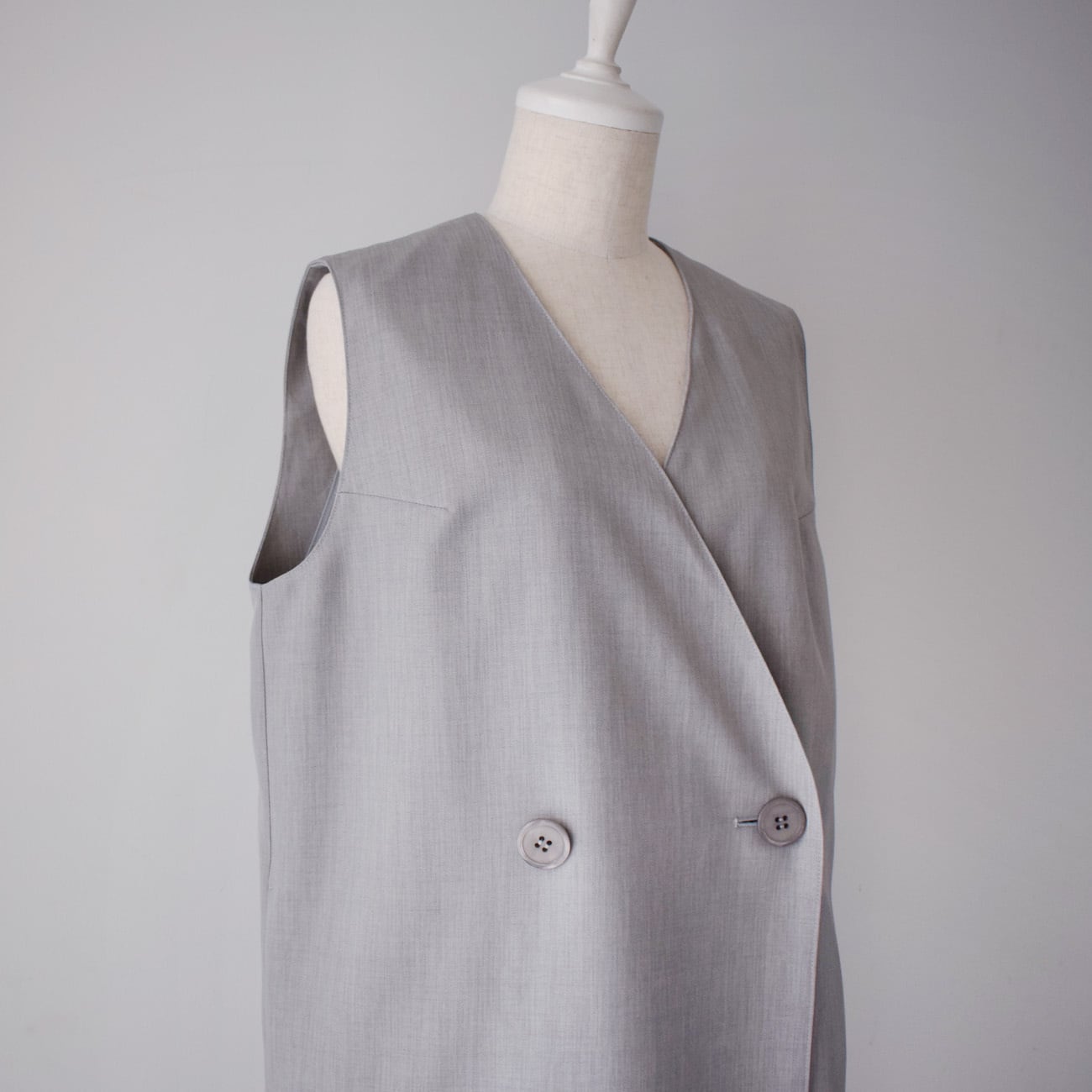 大人の女性が普段使いしやすく、また、ライトフォーマルにも使えるアイテムになるよう意識して作ったロングジレです。
