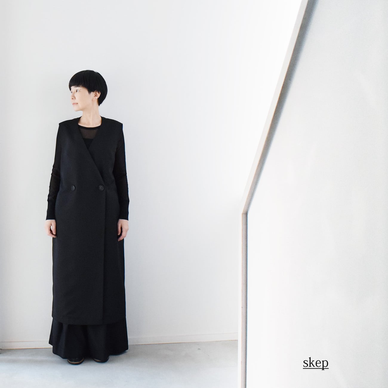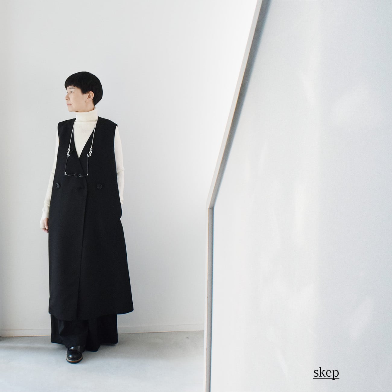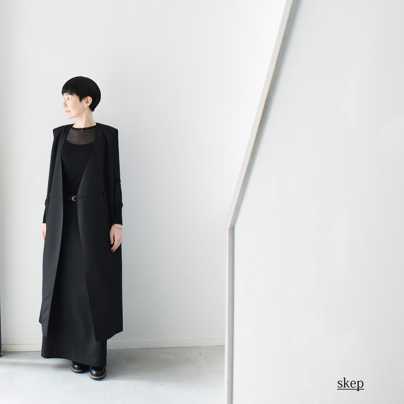 大人の女性が普段使いしやすく、また、ライトフォーマルにも使えるアイテムになるよう意識して作ったロングジレです。