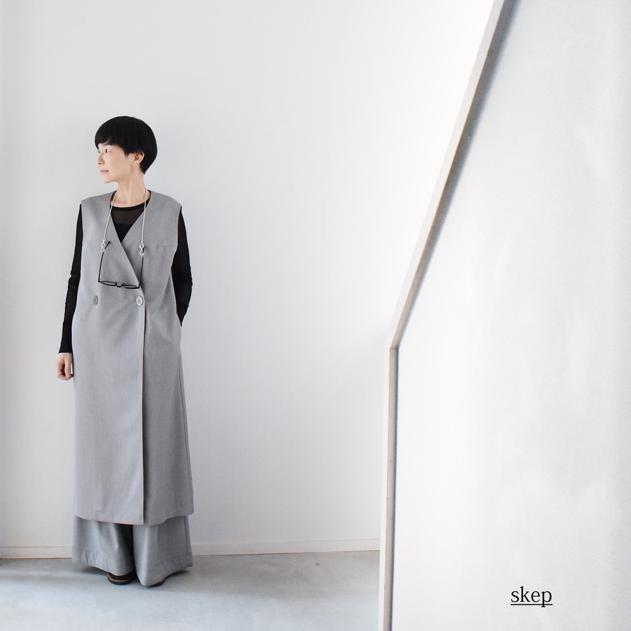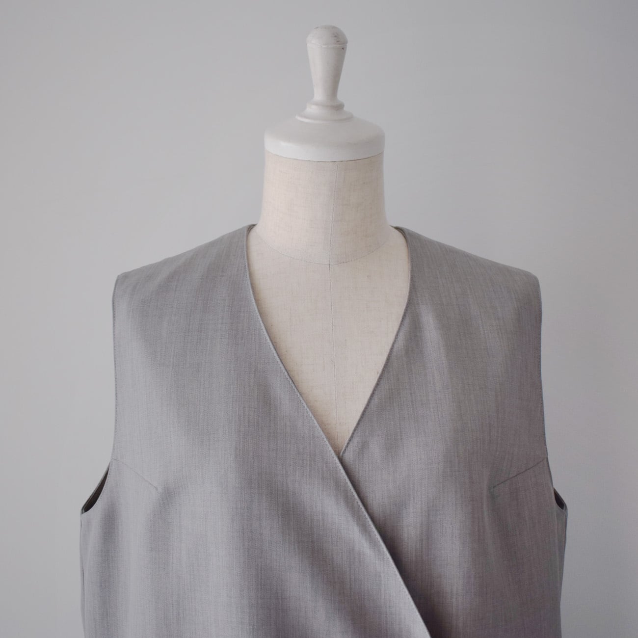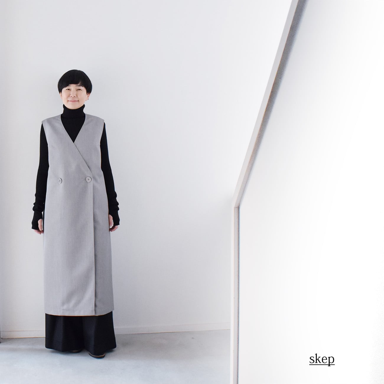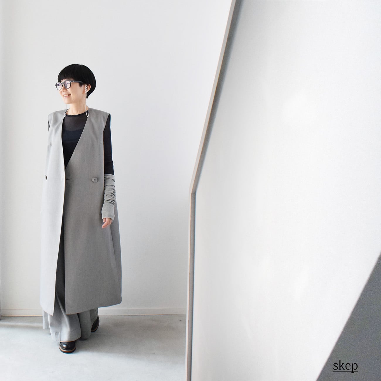 大人の女性が普段使いしやすく、また、ライトフォーマルにも使えるアイテムになるよう意識して作ったロングジレです。