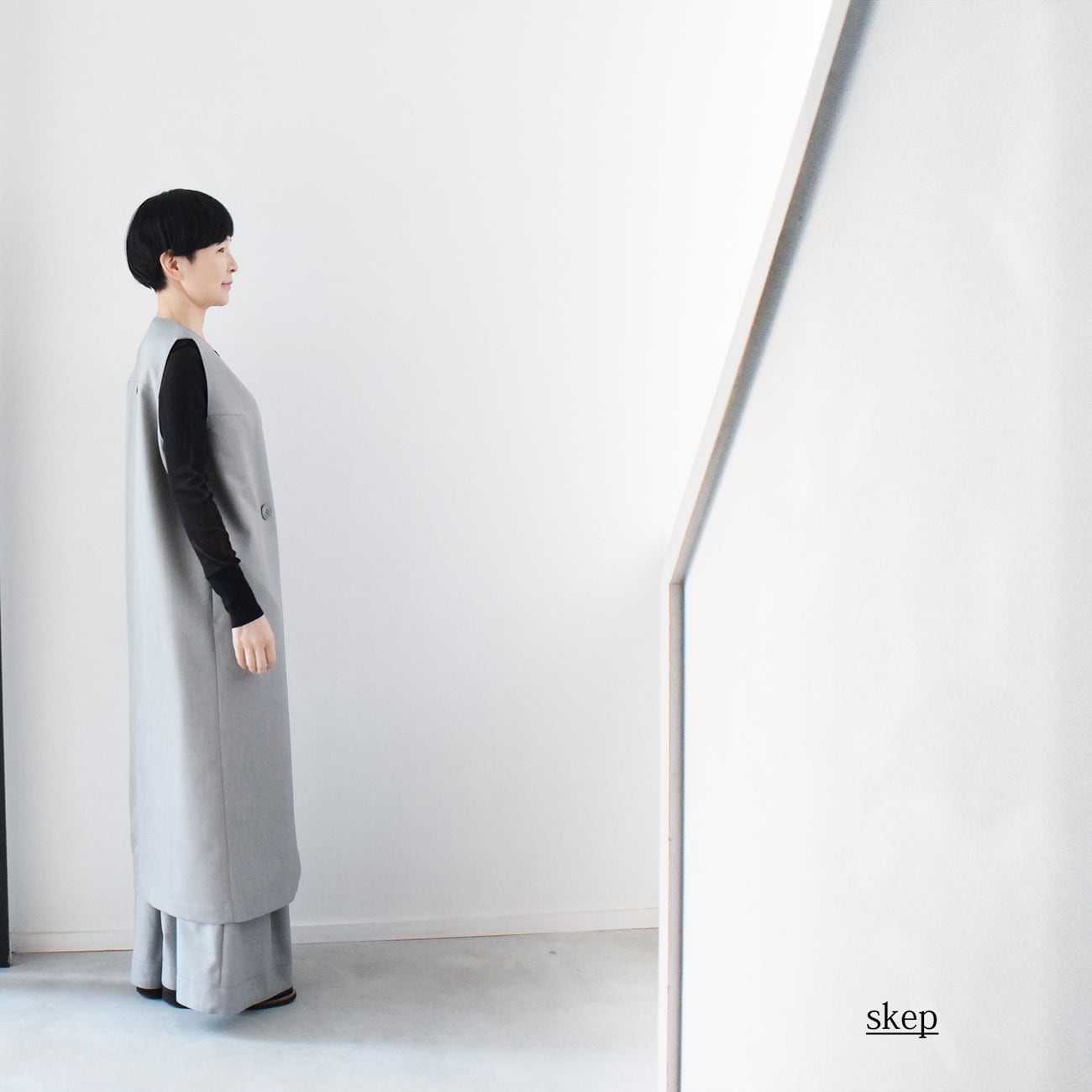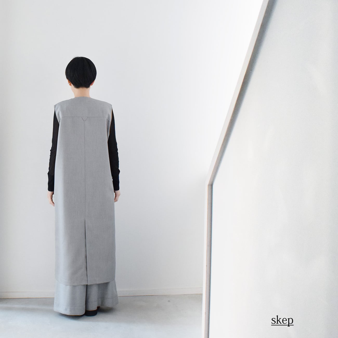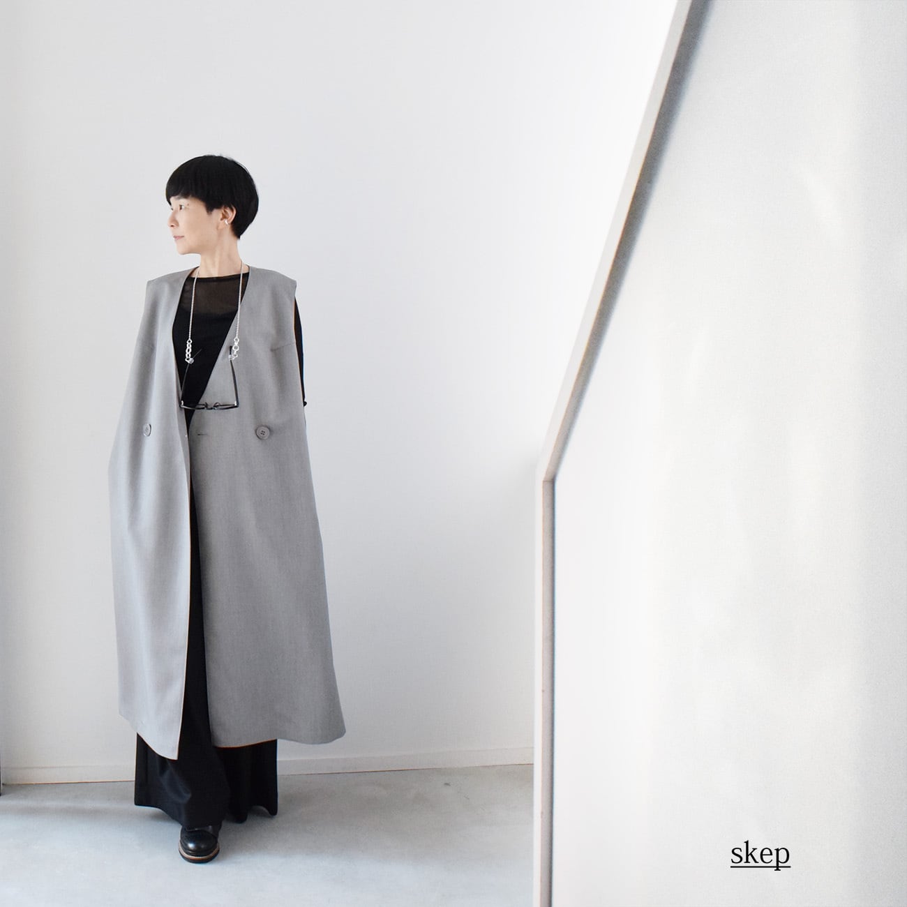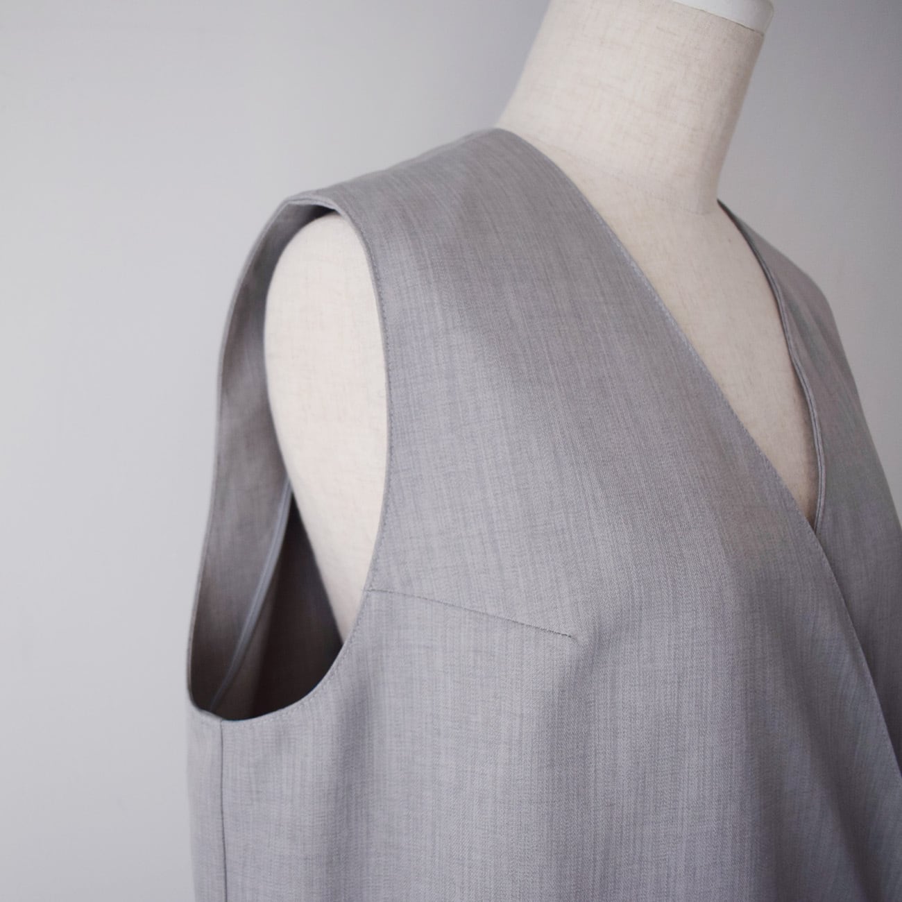 大人の女性が普段使いしやすく、また、ライトフォーマルにも使えるアイテムになるよう意識して作ったロングジレです。