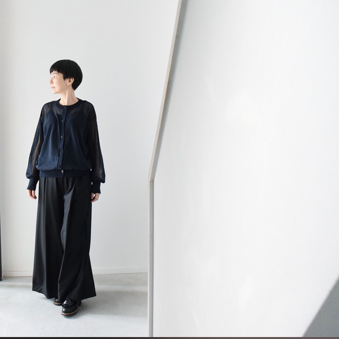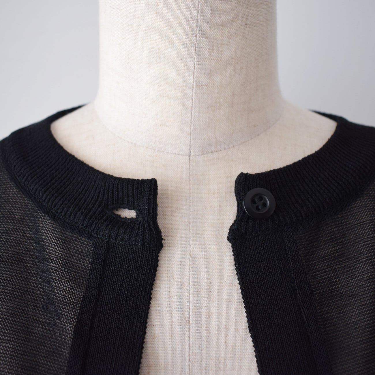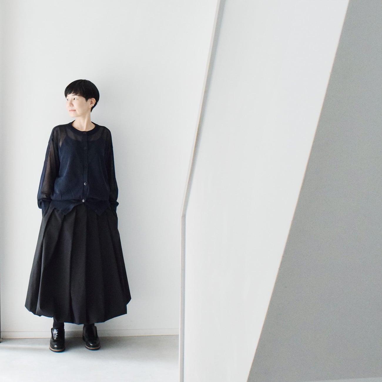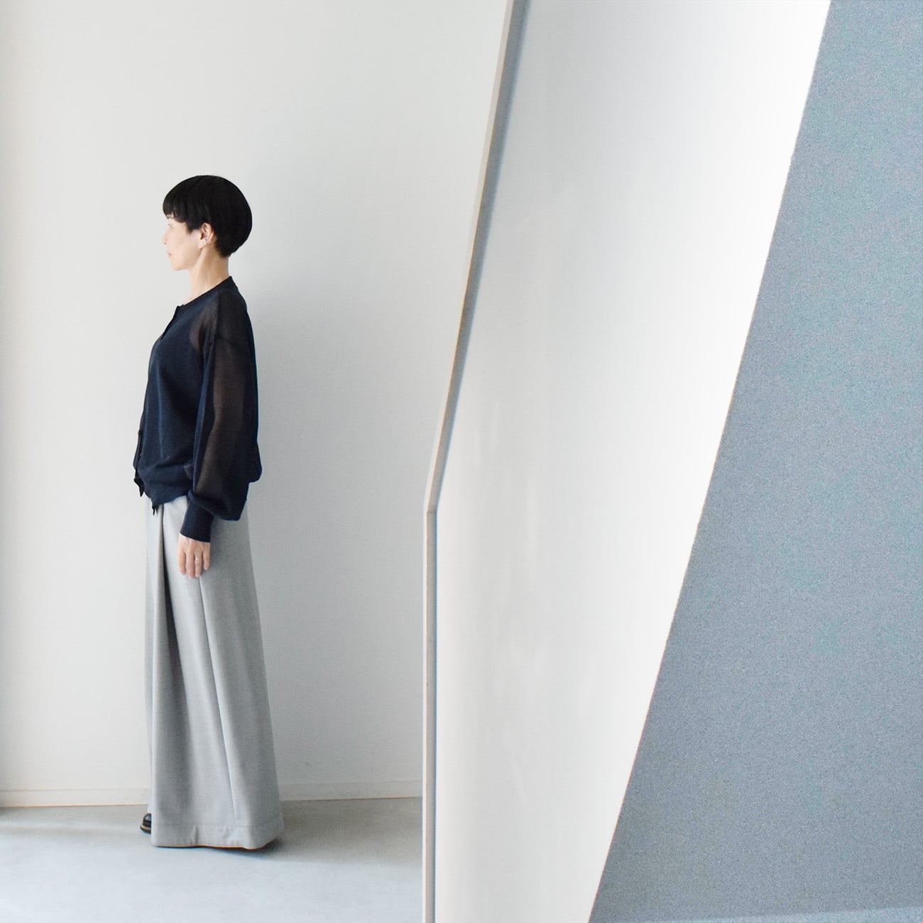 大人の女性が日常的に使いやすいよう、決まりすぎず、丁度いい上品さと、程よいカジュアル感を持たせられるよう考えてデザインしたシアーカーディガンです。