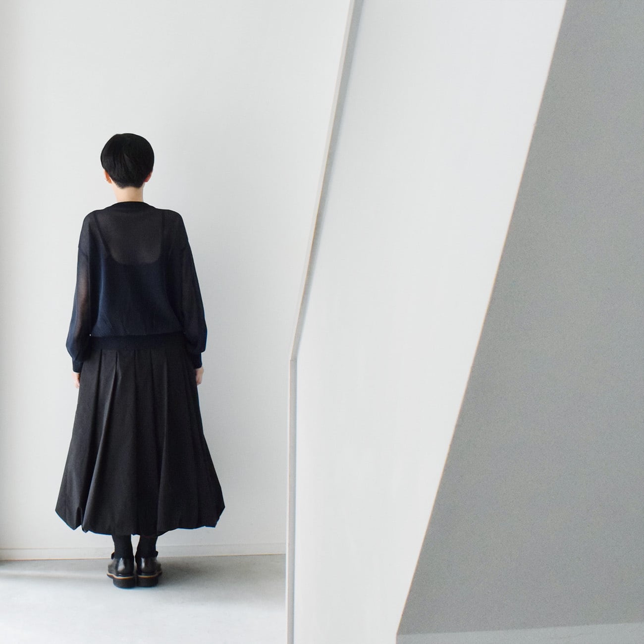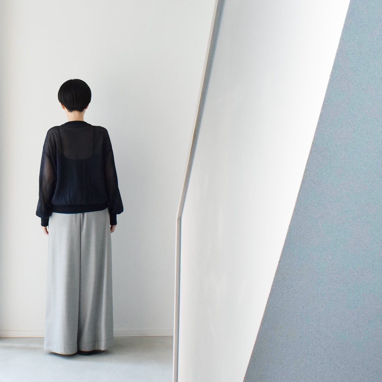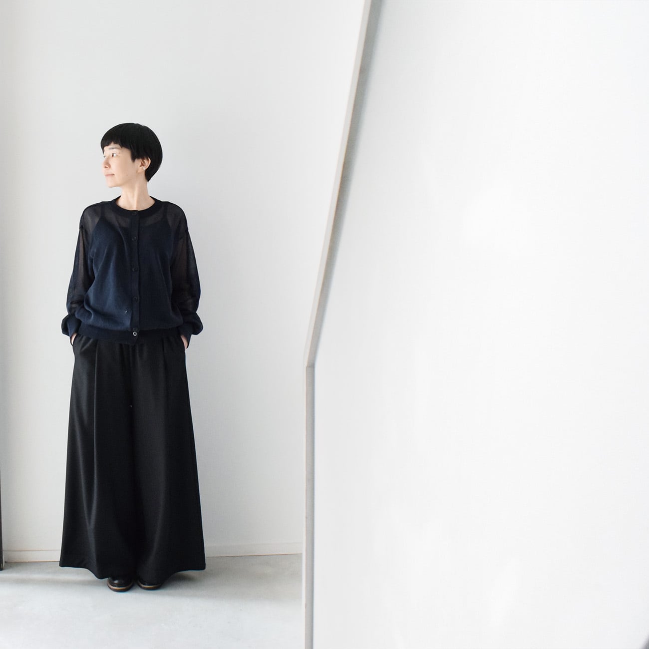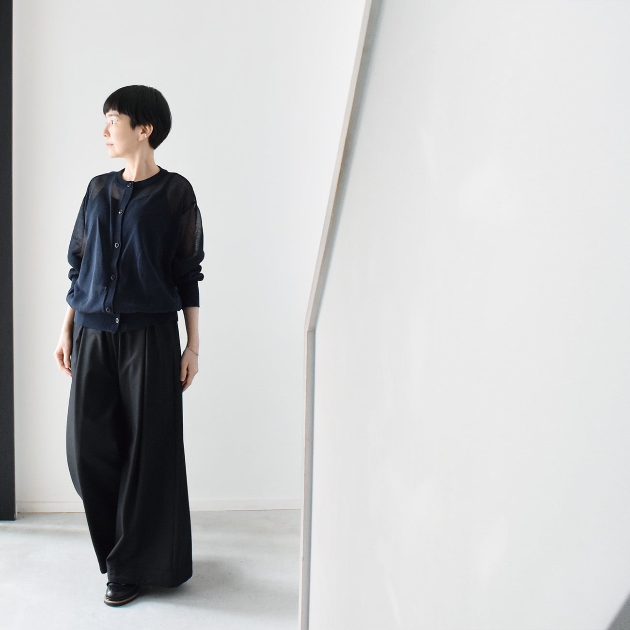 大人の女性が日常的に使いやすいよう、決まりすぎず、丁度いい上品さと、程よいカジュアル感を持たせられるよう考えてデザインしたシアーカーディガンです。