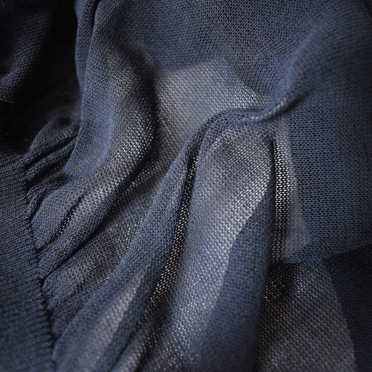 編み方は、透け感出すためにベーシックな編み方の天竺編みで薄く編み上げています。