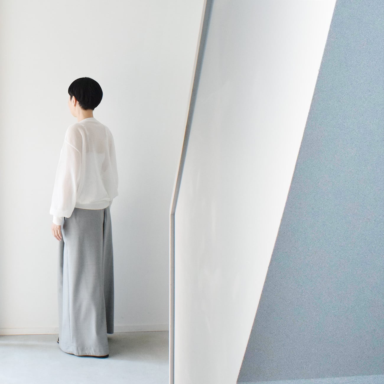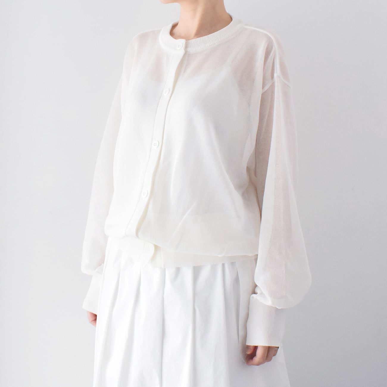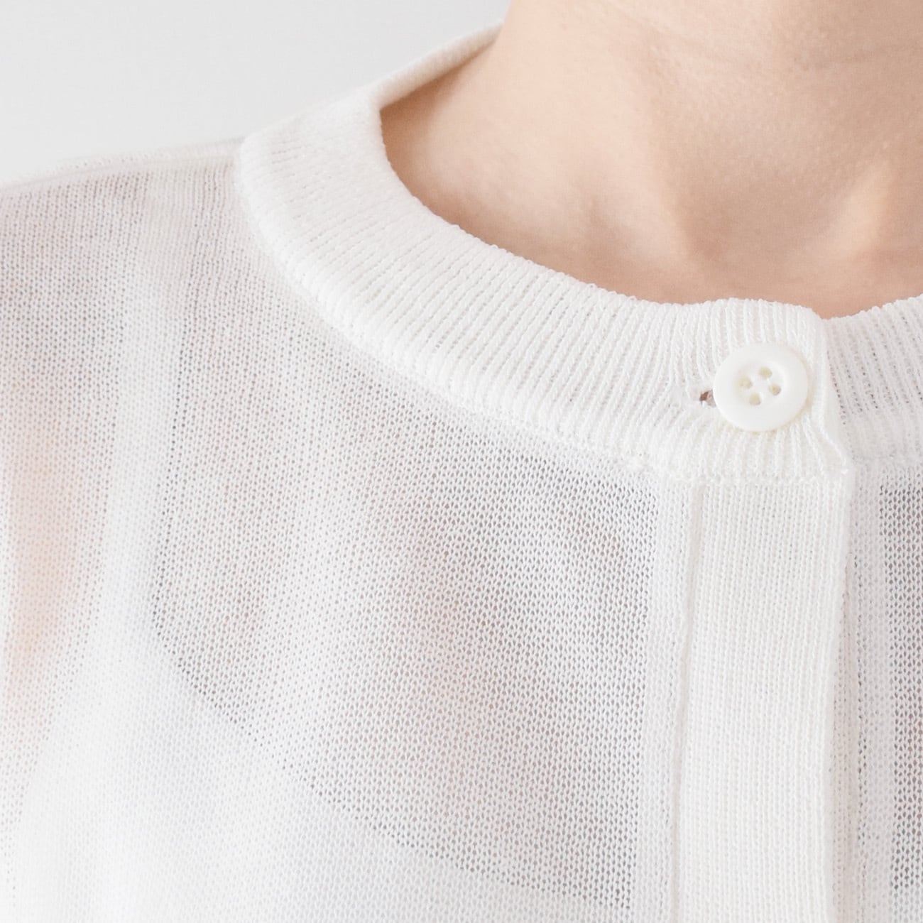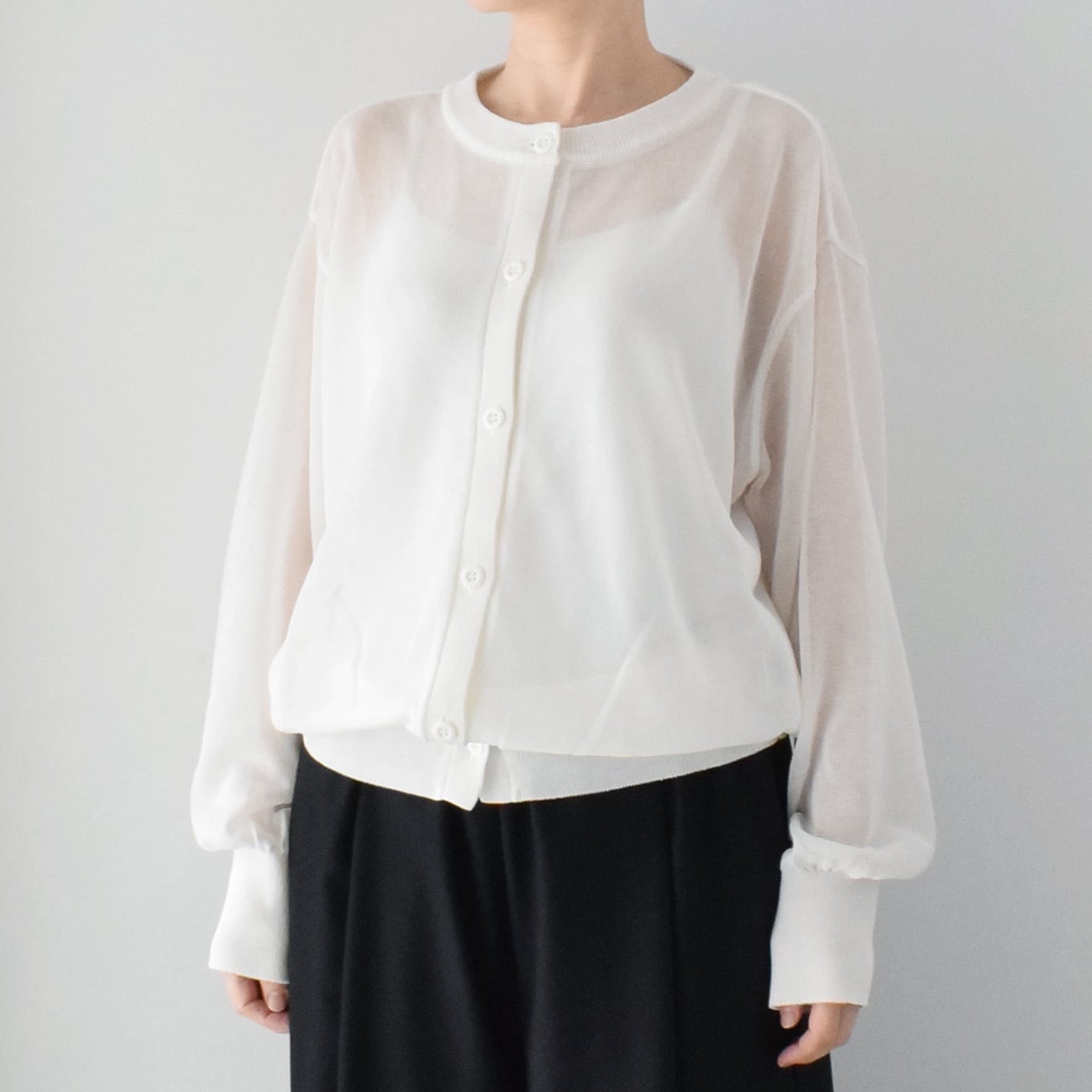 大人の女性が日常的に使いやすいよう、決まりすぎず、丁度いい上品さと、程よいカジュアル感を持たせられるよう考えてデザインしたシアーカーディガンです。