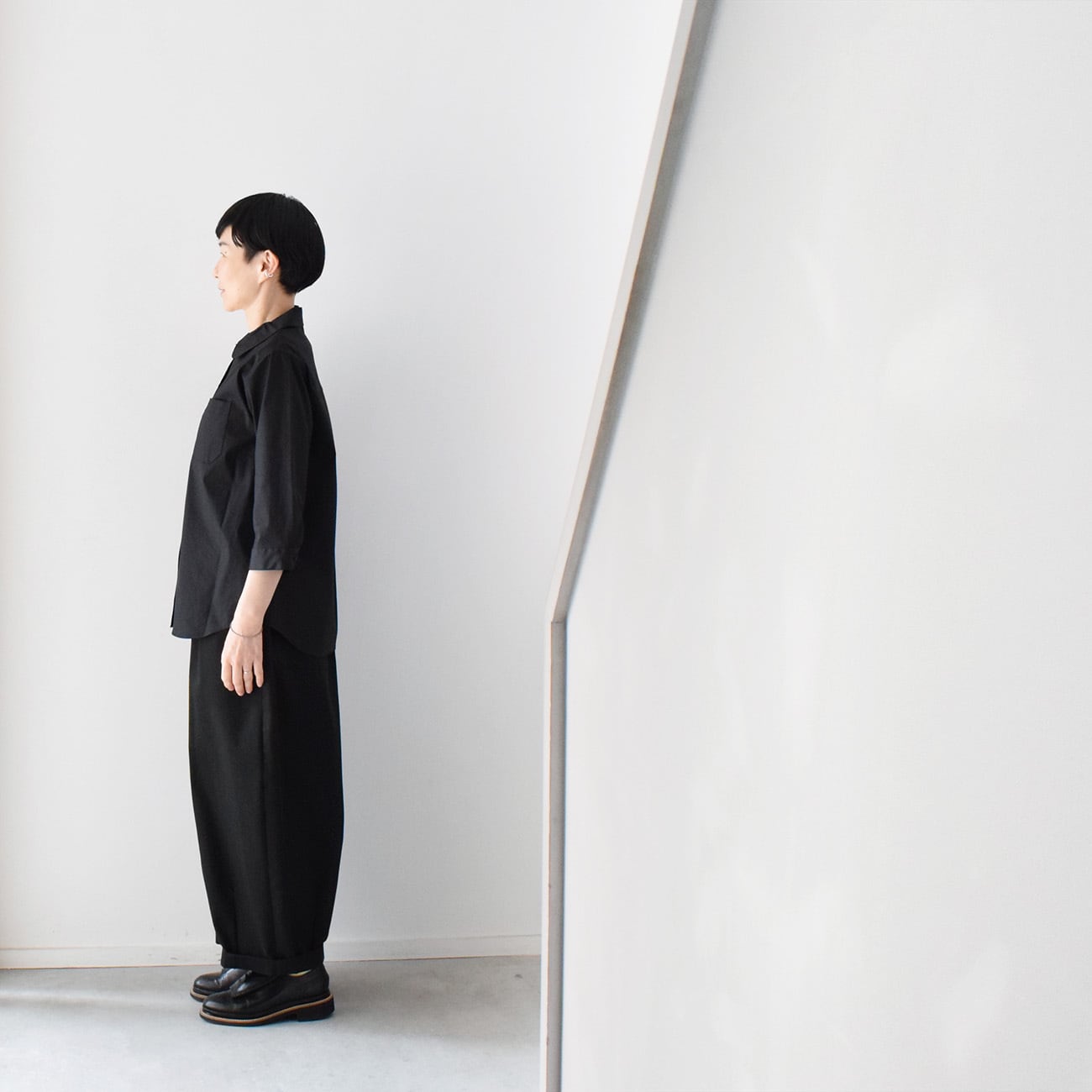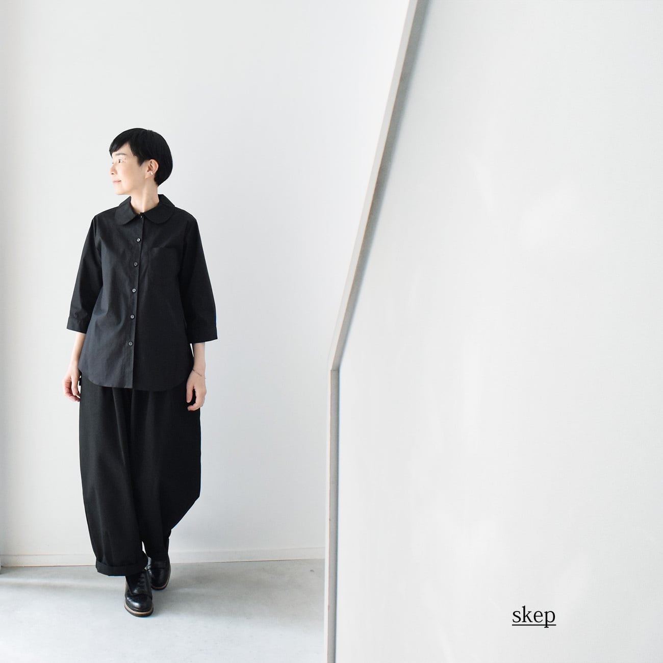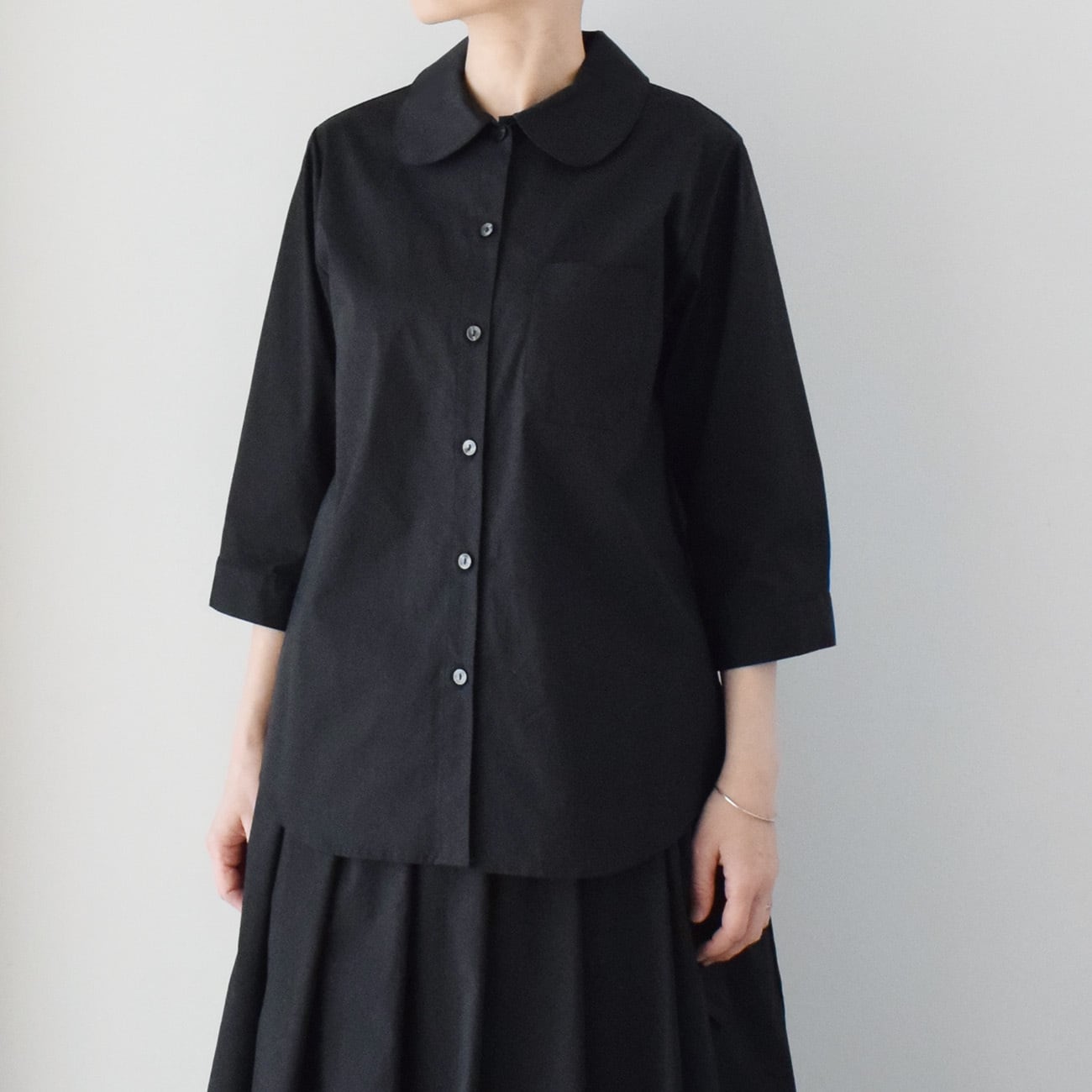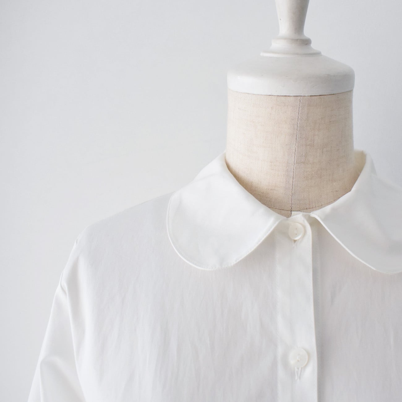 可愛らしさが強くなりがちな丸襟を、可愛らしくなりすぎないように、私たち好みの『大人の女性の丸襟のシャツ』を目指してデザインしました。