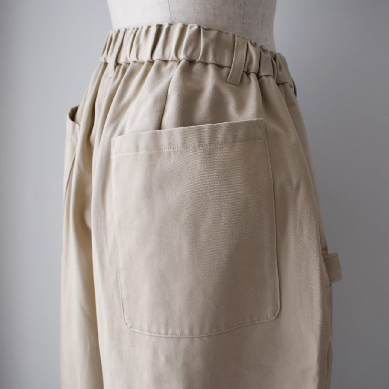 ウエストは総ゴム仕立てで、わたり幅がとても広く、股上も深めなので