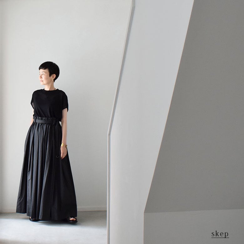 ボリュームがあるのにすっきりと見えるウエスト周りと、裾に向かって程よく広がりのある豊かなドレープ感を持たせられるようデザインした、