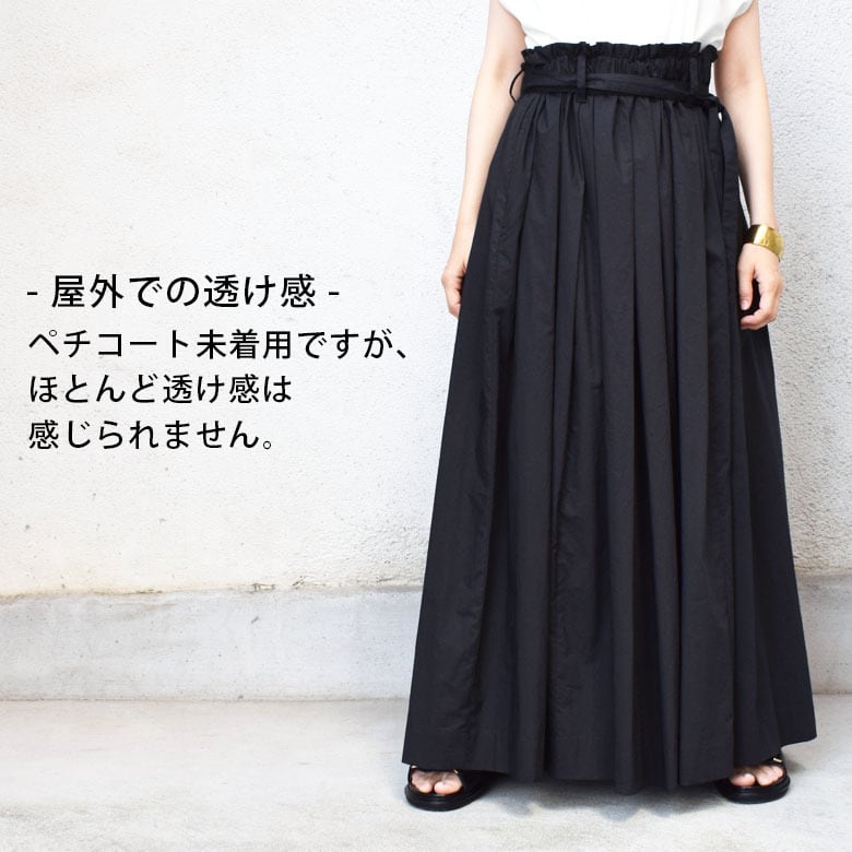 (スタッフが着用し、7月初旬に屋外で確認を致しましたところ、紺や黒に関しましては、ギャザー分量が多いこともあり、