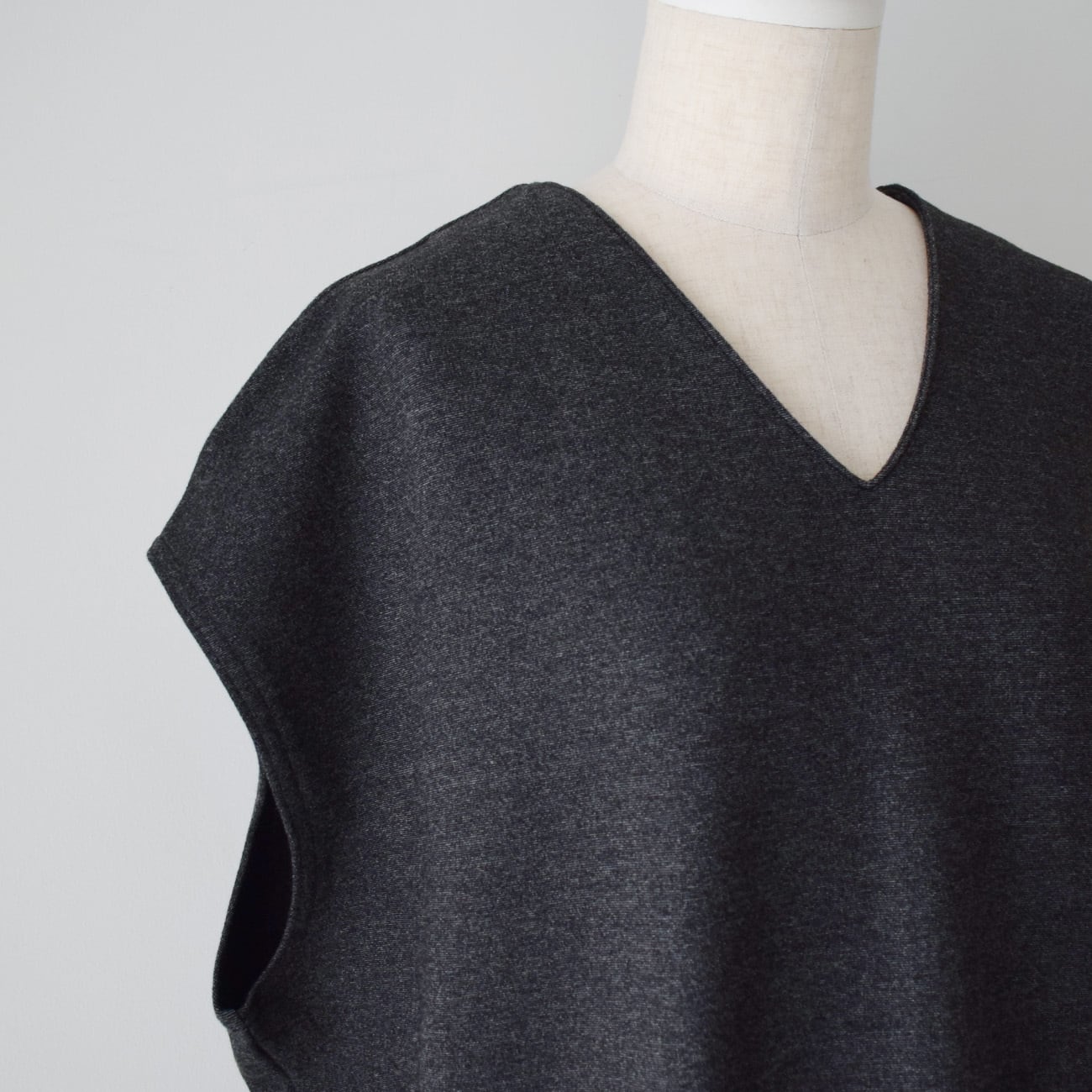 ロングIラインのシルエットに、浅めのVネックと柔らかなラインのフレンチスリーブで、