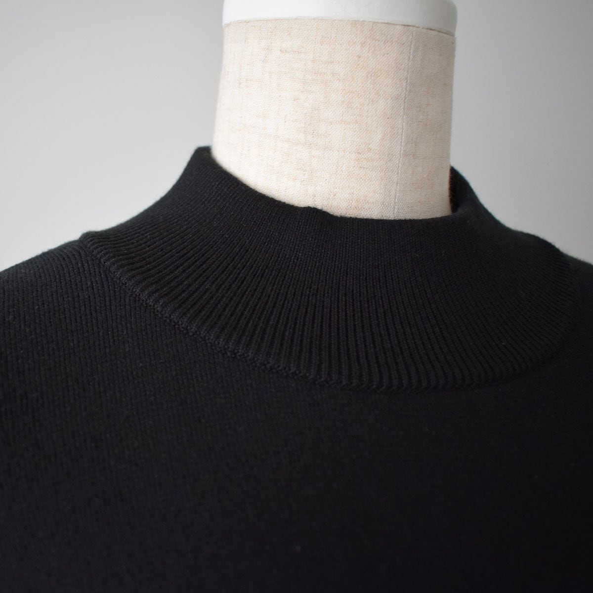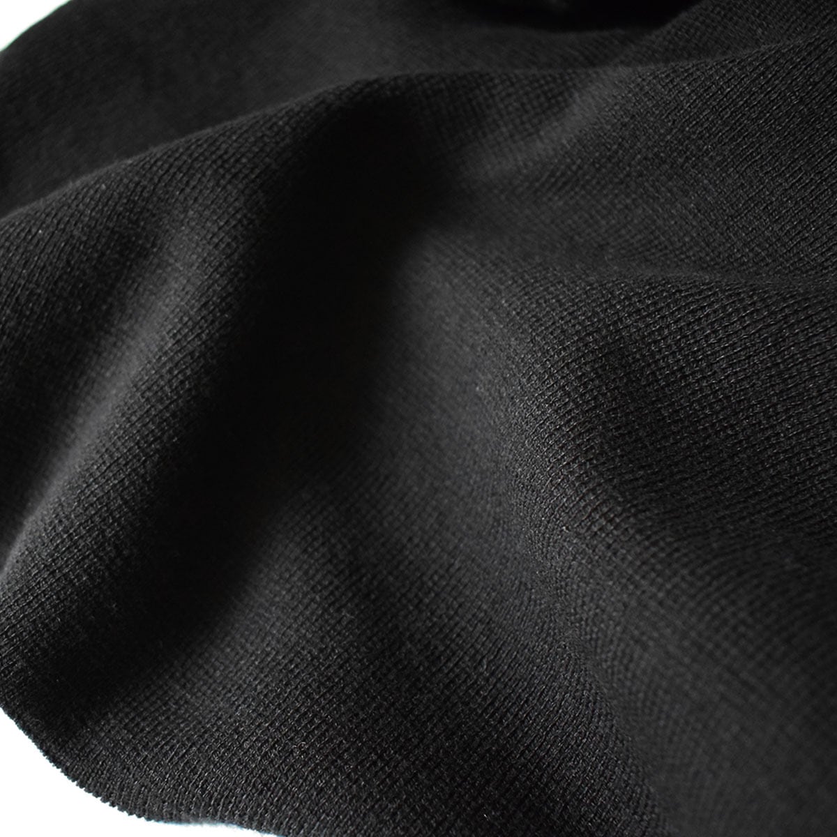 伸縮性がありつつも適度なハリ感もある、やや厚みのあるハーフミラノリブを使用しているので落ち感があり、体型を拾いにくく、すっきりとしたシルエットでご着用頂けます。
