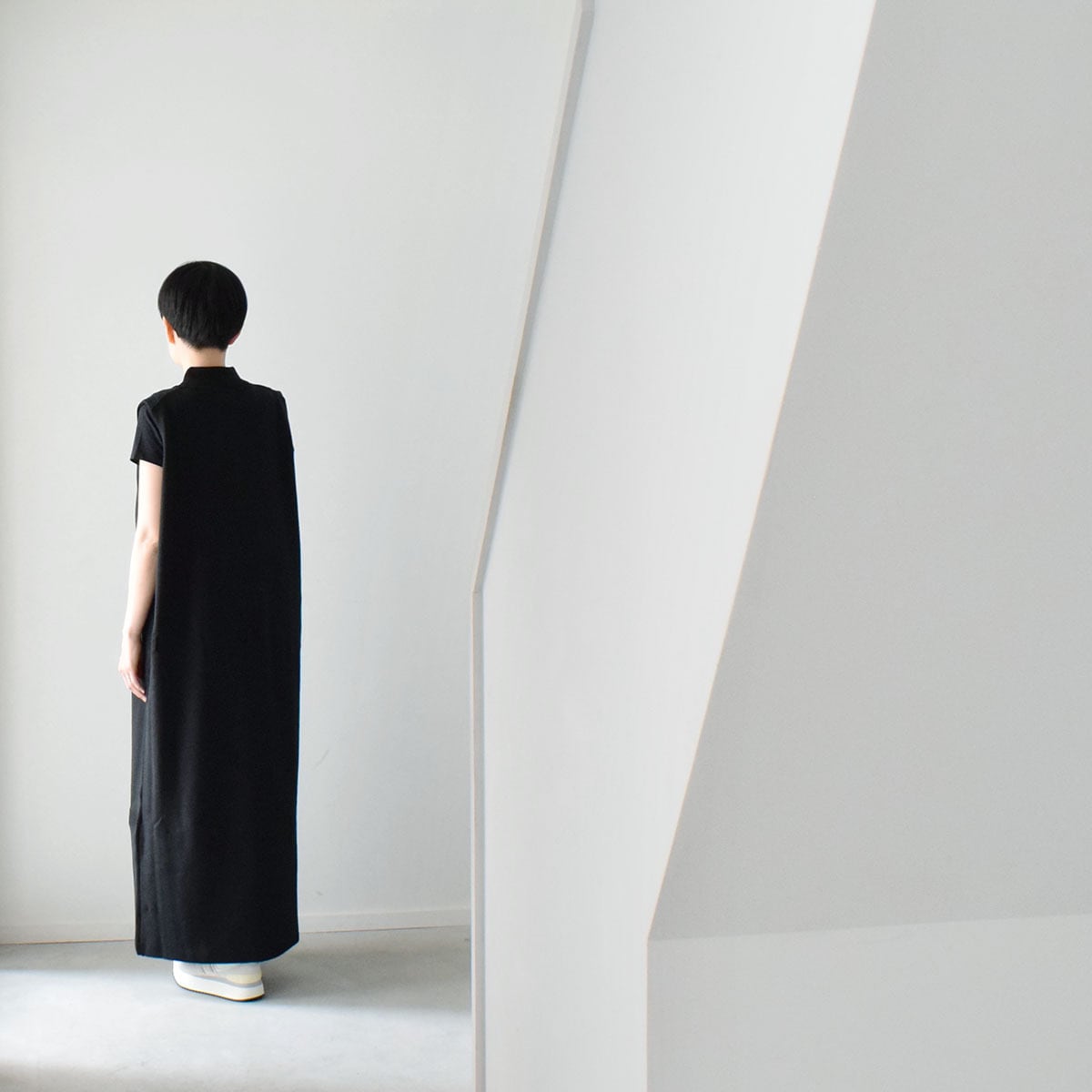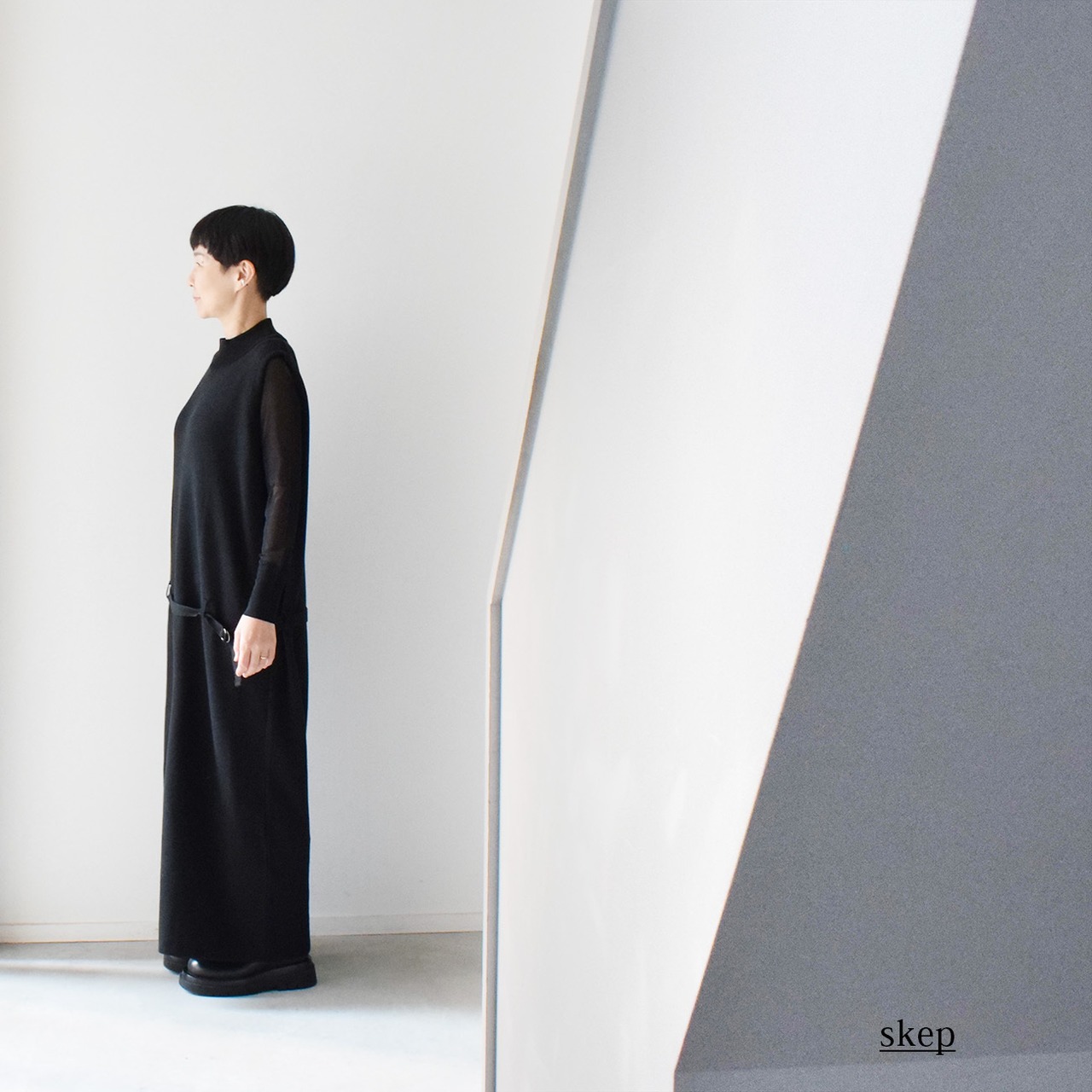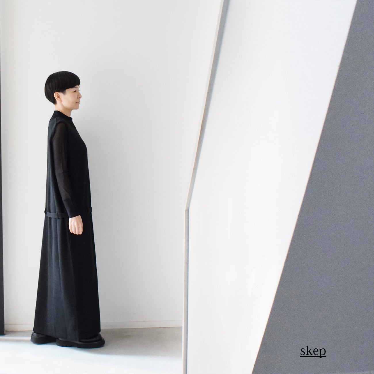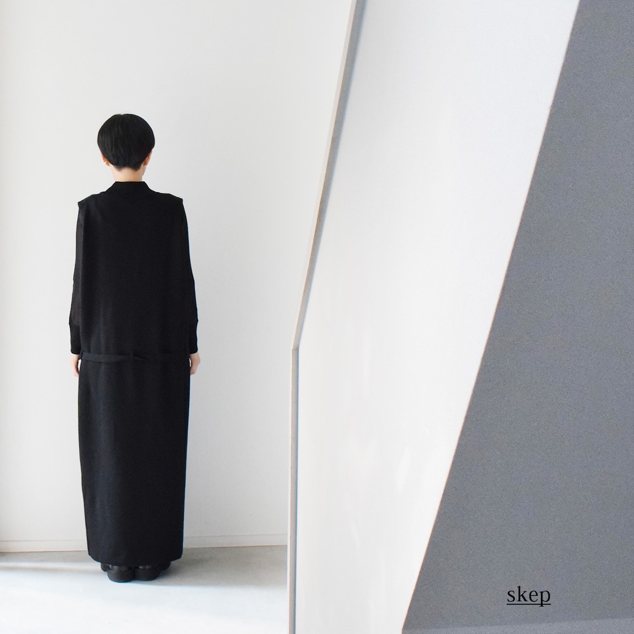 縦にスラッと長いIラインシルエットで、体のラインを強調しないよう、サイズ感にもこだわって製作しています。