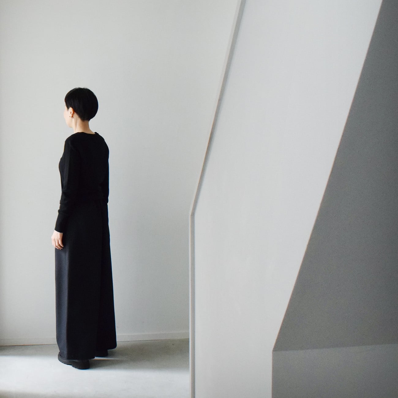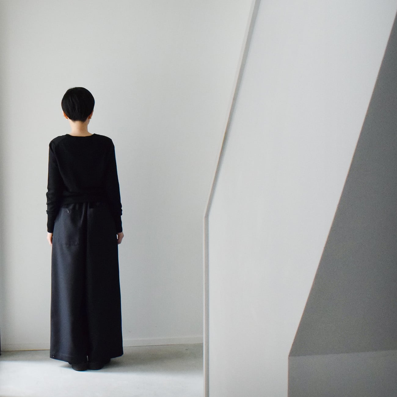 変形ワイドパンツは、着丈が長く、ゆとりもある服なので