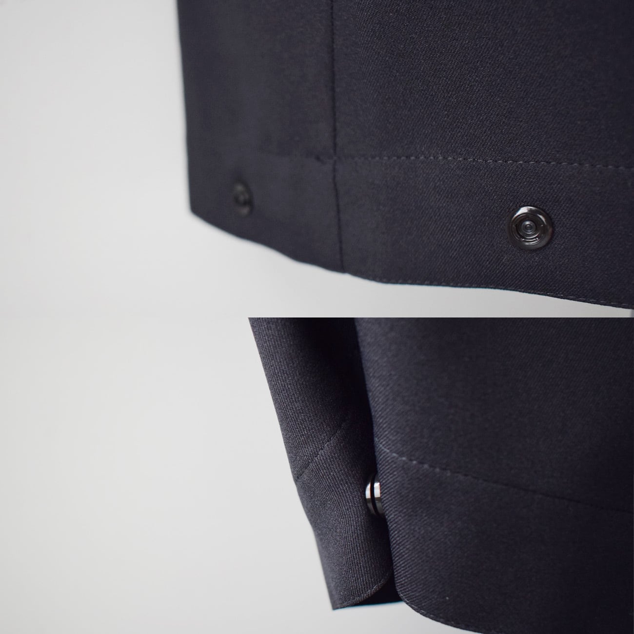 スナップを留めた際に縫代を後ろ側に倒すと比較的きれいなシルエットが作れますので、お試し下さい*