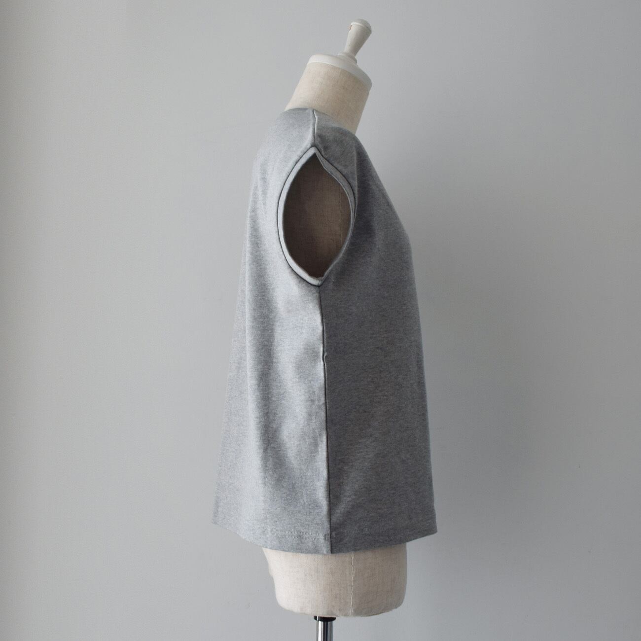 ポンチ素材のフレンチスリーブカットソー(コットン100%):グレー[TO43NSGY]